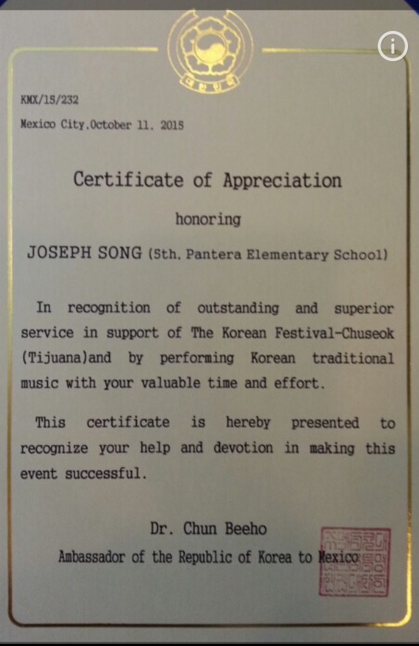 fullsizeoutput_5e December 16, 2017 • 610 × 939 From: Dr. Chun Beeho Ambassador of the Republic of Korea to Mexico. 2014 & 2015 Honored with Appreciation Award